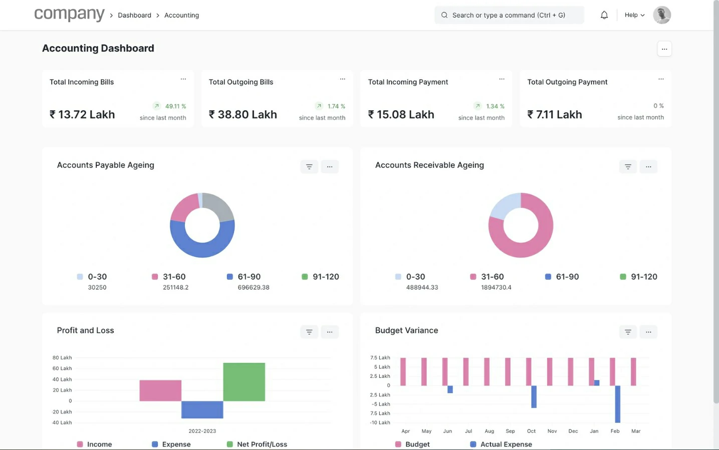 نظام ERP يوفر أدوات متكاملة لعرض دفاتر الحسابات في الوقت الفعلي وتحليل الأداء المالي باستخدام لوحات تحكم محاسبية قابلة للتخصيص. يمكن تخصيص مؤشرات الأداء الرئيسية لمتابعة جوانب مختلفة من الأداء المالي مثل الإيرادات والمصروفات والضرائب، مما يساعد في اتخاذ قرارات سريعة ومدروسة. يتيح النظام أيضًا الأبعاد المحاسبية القابلة للتخصيص لتصنيف وتحليل الأنشطة المالية بناءً على المعايير المحددة. كل هذه الميزات توفر تحليلاً شاملاً للمؤسسة في مكان واحد، مما يسهل متابعة الأداء المالي وتحقيق كفاءة أعلى وزيادة في الربحية.