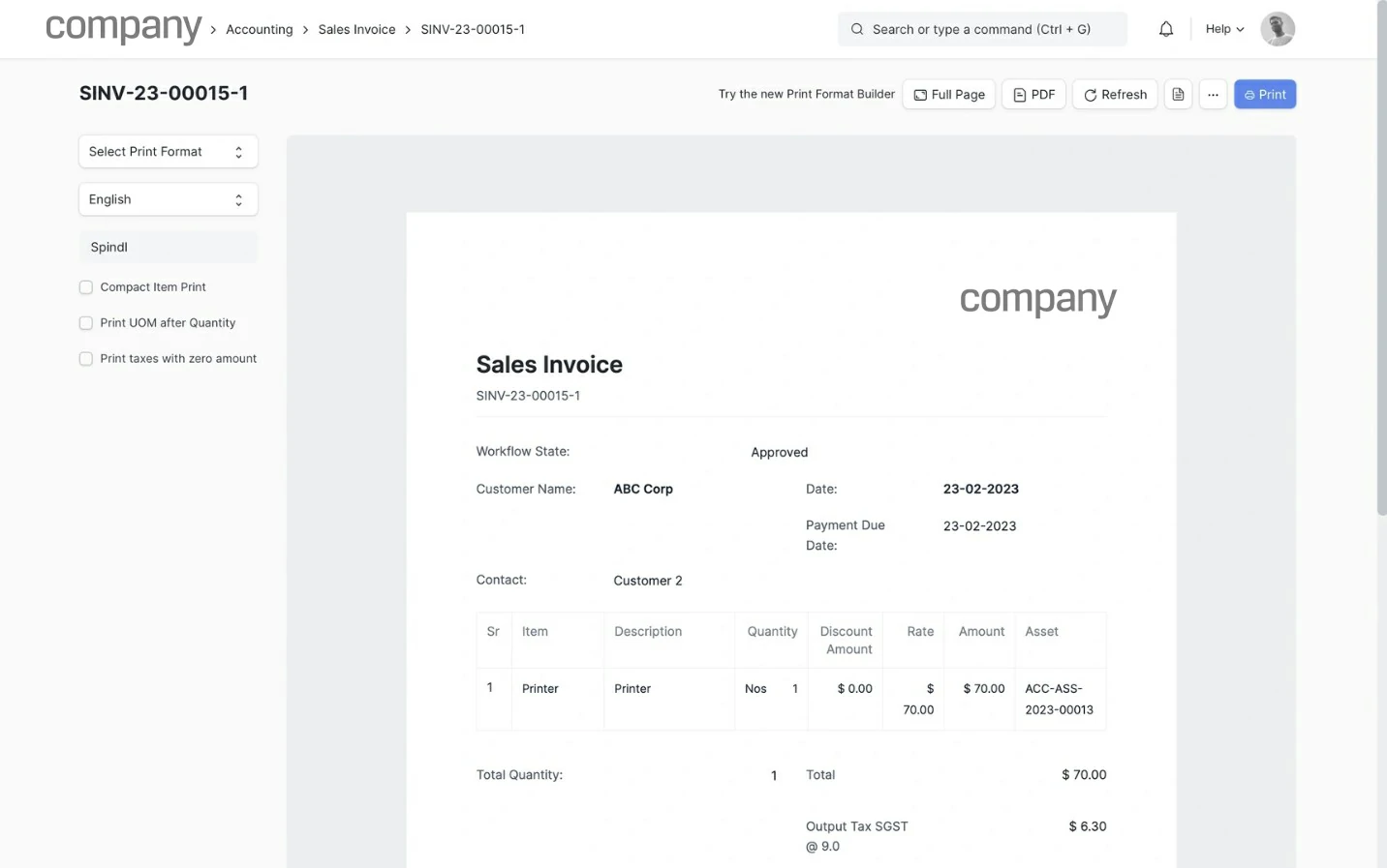 بالإضافة إلى ذلك، يتيح ERP إنشاء نماذج طباعة مخصصة للفواتير باستخدام HTML و Jinja، مما يسمح بتصميم الفواتير بشكل احترافي ومتوافق مع هوية الشركة. هذا يساعد في تحسين الكفاءة المالية، وزيادة الشفافية، وتعزيز العلاقة مع العملاء.