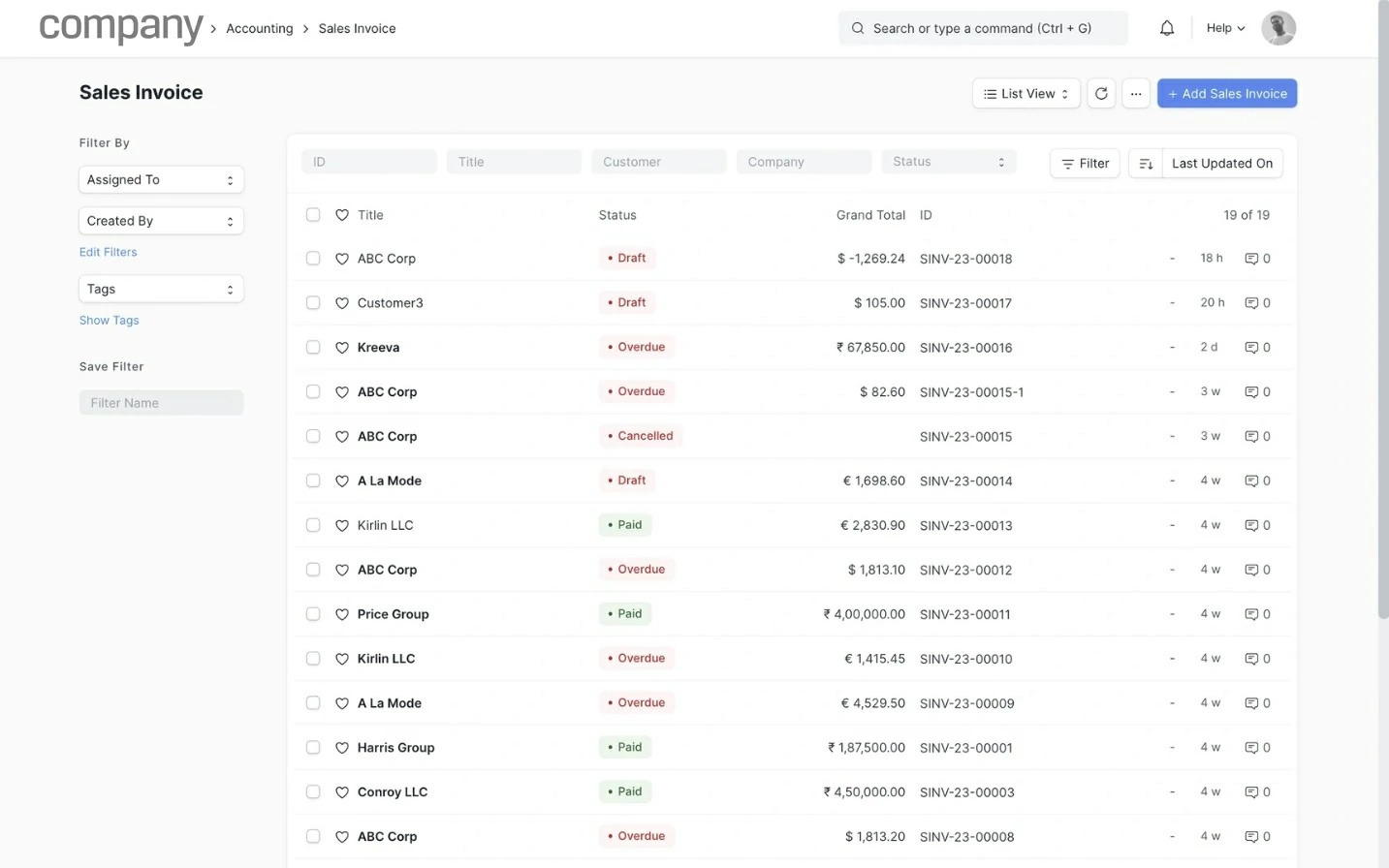 وفر نظام ERP حلولًا متكاملة لإدارة الفواتير و التسعير ومتابعة المدفوعات المستحقة. يمكن إنشاء الفواتير تلقائيًا استنادًا إلى المنتجات أو الخدمات المباعة، مع تحديد شروط الدفع وتخصيص الأسعار والخصومات حسب العميل. كما يوفر النظام إشعارات تذكير عبر البريد الإلكتروني و الرسائل القصيرة للعملاء المدينين، مما يساعد على متابعة المدفوعات المتأخرة.