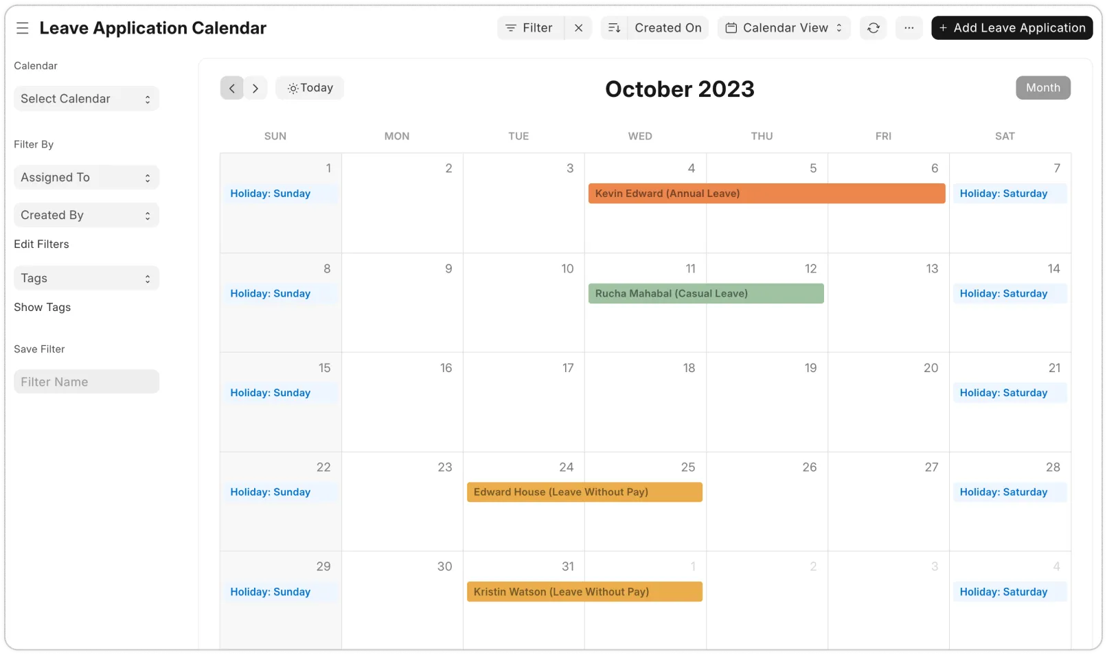 يوفر تقويم الإجازات رؤية شاملة لتوفر الموظفين ويساعد على تجنب تعارض الجداول الزمنية. كما يسمح بحظر طلبات الإجازات خلال فترات الذروة، ويتيح استرداد الإجازات نقدًا بناءً على السياسات. يمكن تتبع أرصدة الإجازات من خلال تقارير مفصلة وتحليل بيانات الإجازات، مما يساعد في تحسين تخطيط السياسات المستقبلية.